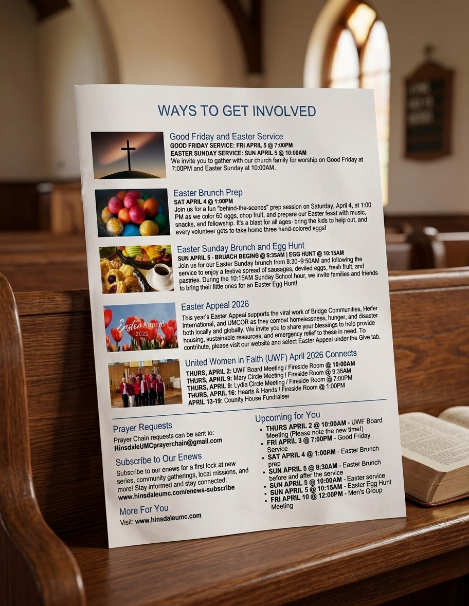 We handle the layout and design of your weekly bulletin, ensuring it is clean, easy to read, and error-free. We turn your rough notes into a polished resource that welcomes every guest.